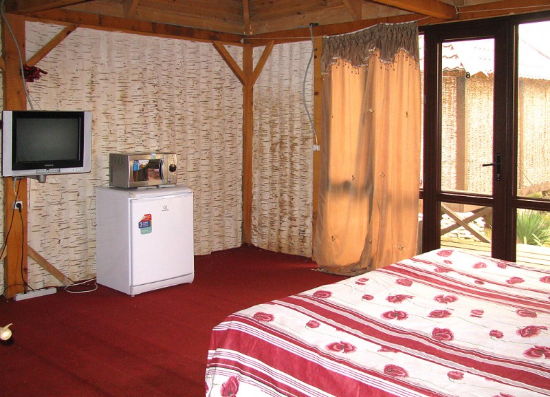 - 2-местные стандартные номера (душ, туалет, телевизор, холодильник, кондиционер. В номере спальная зона отделена от санузла стилизованной перегородкой из бамбука).
