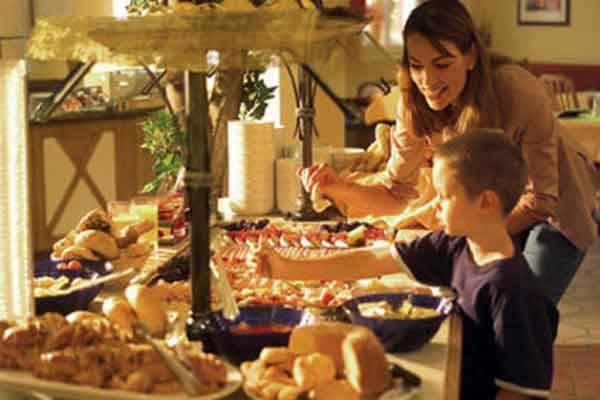 Завтрак — буфет, ужин — обслуживание по меню.