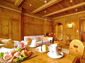 Apartment type 4: "Erzherzog-Johann-Suite" (ок.140 кв.м) - ванна, туалет; душ, туалет; гостиная/спальня, 2 спальни, кухня, камин; крытая терраса, балкон; номер апартамента - 8; возможно размещение восьми человек.