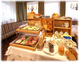 В отеле: комната для завтраков.