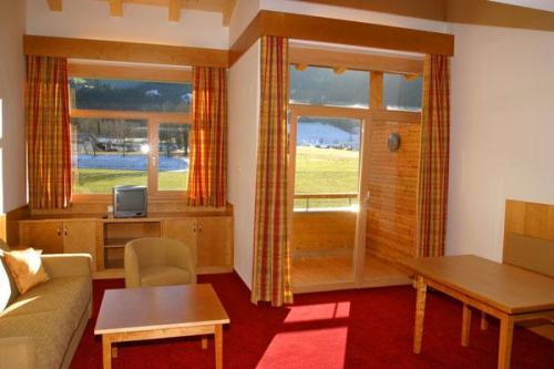 в центре поселка, в 300 м от общественного бассейна и в 700 м от подъемника. Остановка лыжного автобуса около отеля.