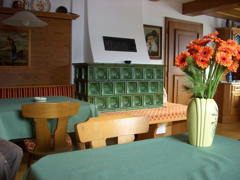 - большая гостиная со спутниковым ТВ и кафельной печью;