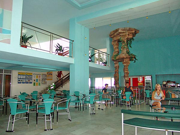 отель находится на берегу моря и в 200 от центра курорта. Вход в море со стороны отеля затруднен из-за каменистого берега, но в 200 метрах находится песочный пляж. Отель построен в месте, где велика концентрация йода в воздухе, по причине недалеко расположенных грязевых источников. Пребывание на территории отеля уже является оздоровительной процедурой для всех отдыхающих.