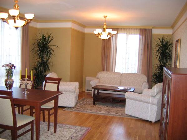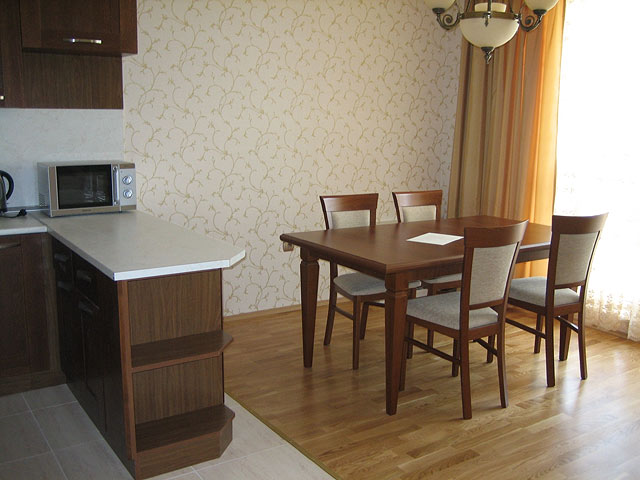 гостиная с одной или двумя спальнями, разделенные дверью, полностью оборудованный кухонный бокс, спутниковое TV, кондиционер, мини-бар, телефон, балкон, санузел с ванной, фен.