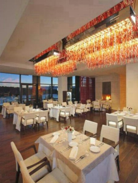 Бары и рестораны находятся на нижних этажах, там же оборудованы просторные террасы для трапезы на открытом воздухе и принятия солнечных ванн. На самом нижнем этаже разместился винный погреб.