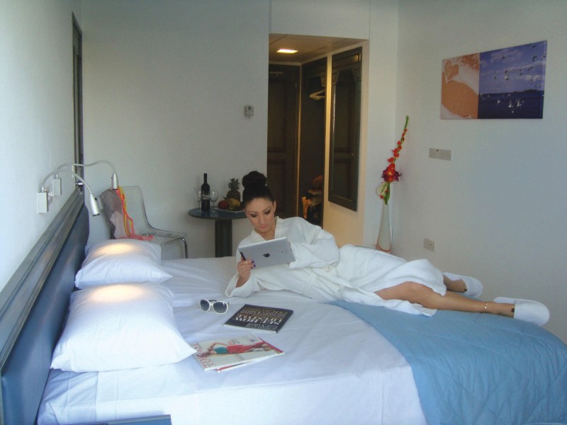 - 24 однокомнатных Suite, площадью 45 кв.м., состоящие из спальной комнаты с двуспальной кроватью, гостиной с 2 диванами. Номера рассчитаны на проживание 2-4 человек.
