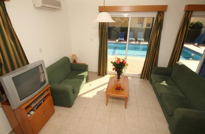 - комфортабельная вилла Kalypso с частным плавательным бассейном, спальной комнаты с двуспальной кроватью и второй спальной комнаты с 2 односпальными кроватями, гостиной;