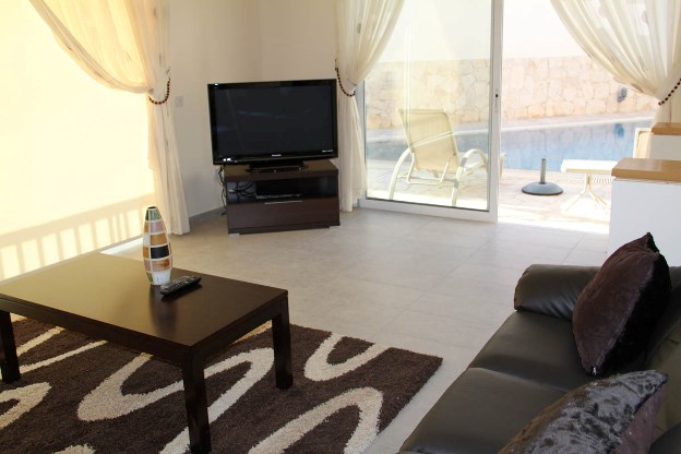 Вилла расположена в эксклюзивном комплексе с охраняемым входом в местечке Хлоракас в 15 км от аэропорта г. Пафоса. Хлоракас находится в окрестностях Пафоса, немного не доезжая Киссонерги и Корал Бэй. В центре Хлоракаса есть супермаркет и традиционная кипрская кофейня, на берегу – несколько отелей, а также магазины и рестораны.