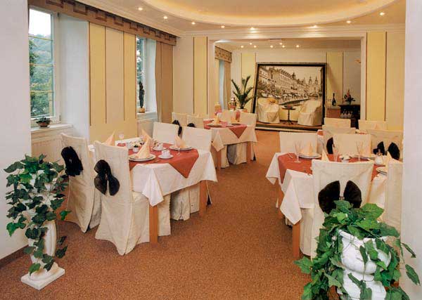 - ресторан на 50 мест предлагает богатый выбор блюд чешской и европейской кухни, диетические блюда;
