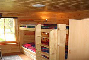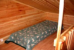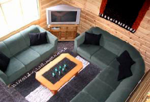В коттедже: гостиная с камином; кухня-столовая; 2 спальни на первом этаже с двуспальными кроватями (в одной из спален 2 дополнительные кровати), 1 закрытая спальня наверху с двуспальной кроватью + 2-3 спальных места на открытом лофте; сауна с душем, туалет.