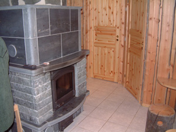 на 1-м этаже: гостиная-кухня, 2 спальни (по 2 односпальные кровати), WC; на 2-м этаже: 2 спальни (по 2 односпальные кровати) и комната без двери (2 односпальные кровати); на нижнем этаже: сауна и комната отдыха с камином, WC и 2 душа. Лестница на 2-й этаж с детскими воротами наверху.
