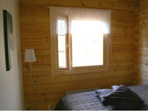 на 1-м этаже: 2 спальни (в одной 2 односпальные кровати, в другой двуспальная кровать 140 см), гостиная – кухня, сауна, WC; на 2-м этаже: 2 спальни (в одной 2 односпальные кровати, в другой двуспальная кровать 140 см).