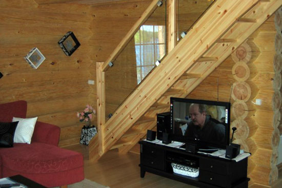 2 отдельные спальные комнаты на первом этаже, спальная-альков на втором этаже, просторная и уютная гостиная с камином (раскладывается софа), кухня- студия, сауна (дровяная), туалет, душевая, терраса, гриль, гараж, весельная лодка…