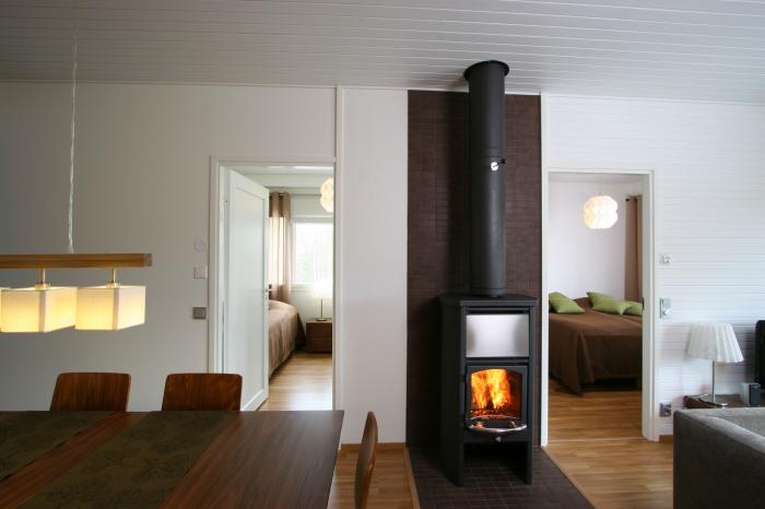 В коттедже: две спальни с двуспальной кроватью, ванная комната, гостиная с камином, дрова для камина, сауна, розетка для запуска двигателя авто, Cd-плеер, Digiboх, Dvd-плеер, CD-плеер, фен, утюг, TВ, уличный гриль, сушильный шкаф, кондиционер, Radio, Internat – беспроводной, выделенный канал. Полностью оборудованная кухня: эл. плита с духовкой, холодильник с морозильной камерой, печь СВЧ, посудомоечная и стиральная машины, тостер, кофеварка и чайник, миксер; ванная комната сушильный шкаф, утюг, терраса, прихожая.