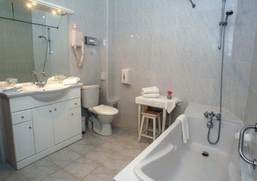 - ванная комната с ванной или душевой кабиной, феном и туалетными принадлежностями.