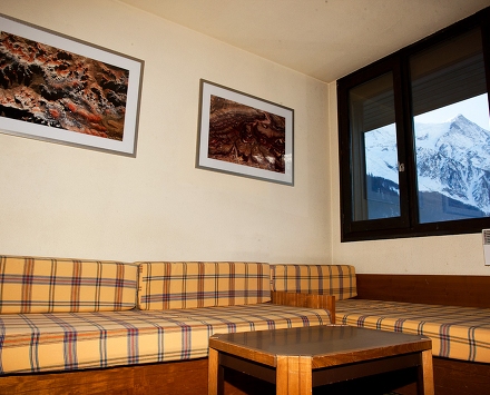* –2 room 4/5 pax (30 кв.м) с видом на Мон Блан: гостиная с двумя диванами (односпальный и раскладывающийся), спальня с двуспальной кроватью
