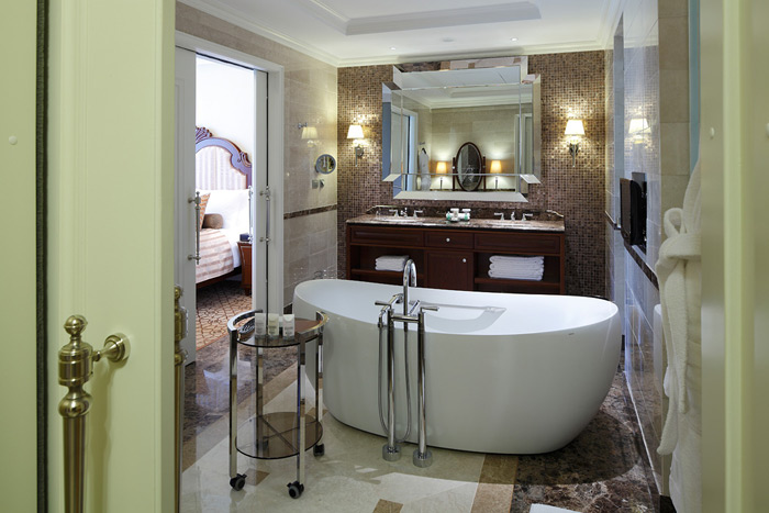 Suite Presidential (300 кв. м.) - окна номера обращены в сторону сада и внутреннего дворика отеля. Номер состоит из двух спален, двух гостиных, холла, двух ванных комнат (душевые кабины с функцией гидромассажа и сауны).