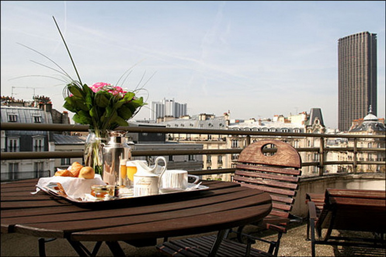 Номера имеют двойную звукоизоляцию, поскольку отель расположен на оживленной улице - бульваре Монпарнас. Этот знаменитый бульвар всегда был местом притяжения писателей и художников из разных стран мир, о чем до сих пор напоминают известные пивные и литературные кафе. Кроме того, поскольку вокзал Гаре де Монпарнас имеет историческое железнодорожное сообщение от Парижа до Бретани, северной провинции Франции, улицы вокруг вокзала заполнены Бретонскими ресторанами, где подают настоящий сидр, и магазинами с кельтскими сувенирами. Всего в двух кварталах от отеля разбит Люксембурский сад - огромный парк с фонтанами и скульптурами, где собираются студенты из соседнего Латинского квартала.