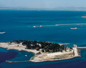 в экологически чистом районе, на большой зеленой территории на острове Эвия, в 22 км от города Халкида и в 1,5 часах езды от международного аэропорта, в 5 км от курортного городка Эретрия.
