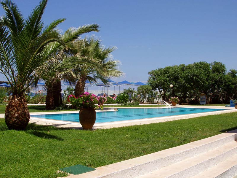 в 35 км от аэропорта г. Ираклион, в 25 км от центра г. Агиос-Николаос, в 1,5 км от Малии, на самом берегу моря.