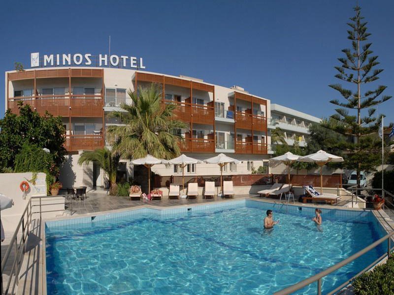 Отель Minos (Минос) расположен в двух минутах ходьбы от пляжа города Rethymno.