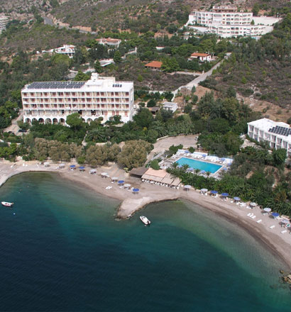 Современное здание отеля, окруженного зеленью, а также сочетание чистейшего моря, отличных климатических условий и минеральные воды Лутраки — все это создает прекрасные условия для приятного отдыха в семейной и дружеской обстановке.