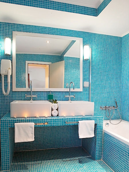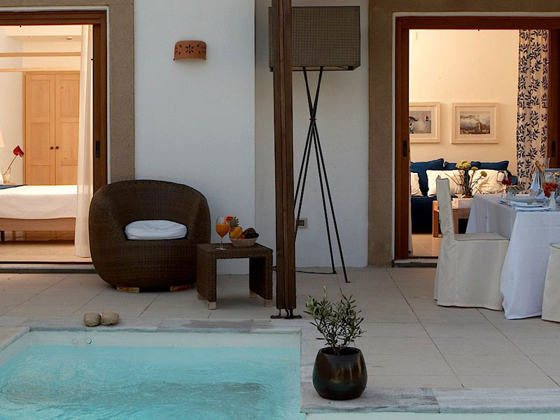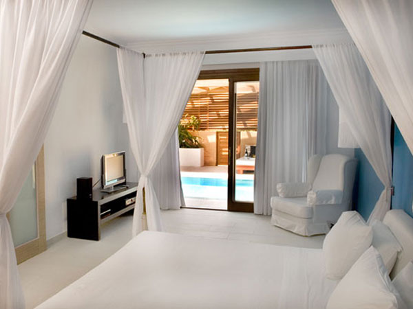 Pool Suites (50 кв.м + 98 кв.м (сад с бассейном)). Желающим провести свой отдых в полном уединении и в окружении безупречного стиля, предлагаютя сюиты, оформленные в насыщенных сине-белых тонах. Роскошный сад с личным бассейном подарят ощущение безмятежности и настоящую роскошь уединения. Каждый сюит включает в себя щедро обставленную гостиную с оригиналами произведений искусства и отдельную спальную комнату. Может разместить семью из двух взрослых с одним ребенком.