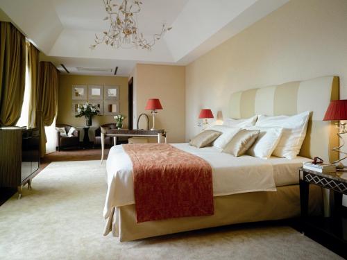 Deluxe Room. 50 кв.метров, двуспальная кровать, классическая итальянская мебель, специальные шелковые обои, мраморная ванная комната с ванной, отделённый душ со стеклянными стенами. Дополнительная кровать.