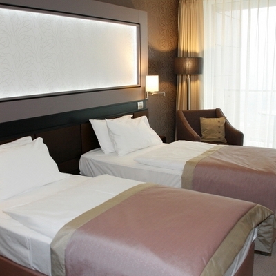 - стандартный номер – номер, площадью 25-29 м2 с двумя кроватями, или двуспальной кроватью и ванной комнатой с душем. Вид из окна номера на будайские горы или на сторону парка. Каждый номер оборудован кондиционером, плазменным телевизором, радио, мини-баром, беспроводным доступом в Интернет, сейфом, феном, ванной комнатой;