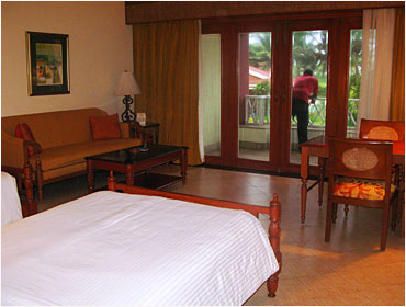 Расположение : отель находится на расстоянии 27 километров от аэропорта Даболим и в 12 километрах от железнодорожной станции Маргао. Этот отель, один из самых роскошных в Гоа, находится на пляже золотых песков Benolime Beach в Юго-Западной части Гоа. Площадь отеля - 56 акров, причем на 45 акрах расположен тропический сад с экзотическими растениями.
