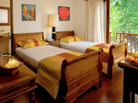 320 номеров с интерьером в балийском стиле, в том числе: 231 Garden Wing Rooms, 60 Garden Bungalows, 20 Superior Bungalows с двумя ванными _ внутри и на открытом воздухе, 4 Garden Suites, 4 Deluxe Suites,1 Suite с двумя спальнями и собственным бассейном на крыше.