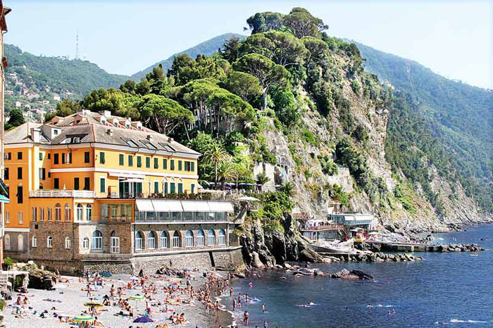 Отель Cenobio dei Dogi стоит среди старых столетних сосен и красивых цветников на изгибе скалистого побережья Лигурии, рядом с живописным курортным местечком Камольи. Cenobio dei Dogi ведет свою историю с 16 века, когда это место облюбовали генуэзские дожи, назвав его "райским заливом", и куда часто приезжали епископы и кардиналы, о чем напоминает до сих пор сохранившаяся старинная часовня.