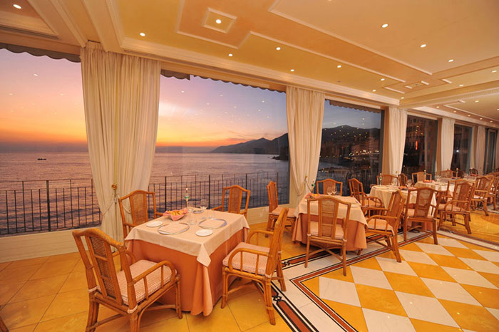 Панорамный ресторан предлагает приятный отдых, разнообразие изысканных блюд лигурийской кухни, а также великолепные возможности проведения бизнес-ленчев, гала-ужинов и банкетов в элегантной обстановке. С террасы ресторана открывается живописная картина всего побережья, освещенного ночными огнями.