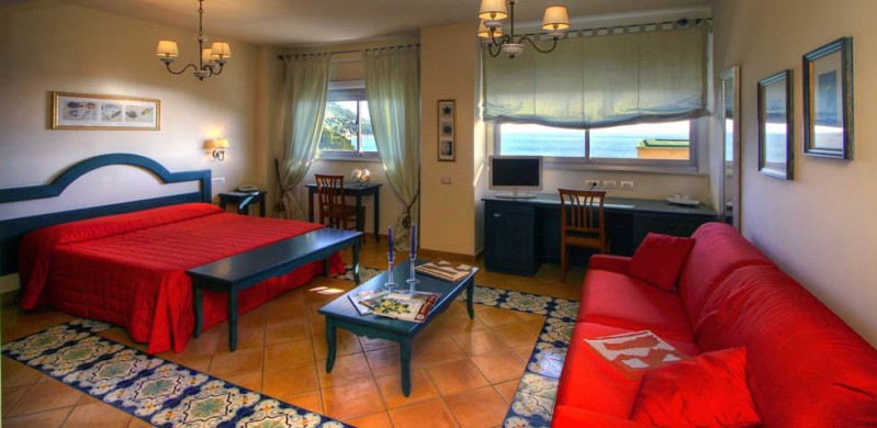 Отель расположен в нескольких километрах от Гаэты, в бухте с золотистым песком, среди роскошного сада, скал и лазурного моря.