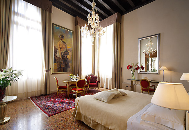 Каждый из 26 номеров этого великолепного отеля в Венеции обладает своей собственной индивидуальностью благодаря чрезвычайно функциональной организации помещений и необычной комбинации материалов: светлый дуб чередуется с позолотой резных изголовий, темные оттенки национального ореха – с теплыми тонами тканей.