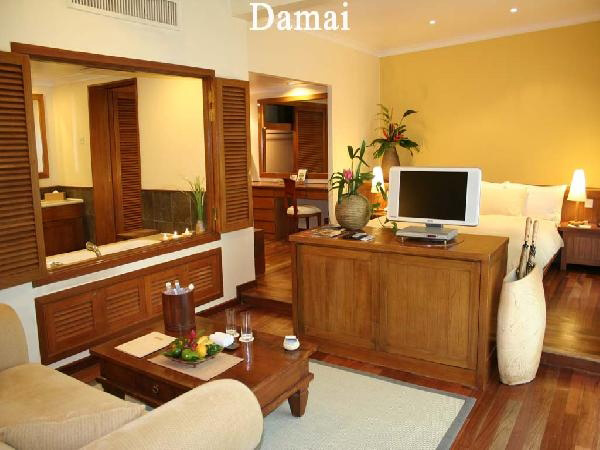 Живая музыка, читальный зал, бизнес-центр, конференц-зал, комнаты для переговоров, салон красоты, центр беспошлинной торговли, комната для хранения багажа, 2,5 километровый песчаный пляж, уникальный бассейн с минеральной водой и дном из специального песка, дезинфицирующим воду, круглосуточное обслуживание номеров, магазинчик кораллов, библиотека, лобби, бар у бассейна, кофе-бар, частный пляж, прокат автомобилей. Множество ресторанов, кафе и баров.Отель предлагает размещение в 138 номерах разного типа: "Анжунг" (Plaza), "Бэйю" (Executive), "Кахайа" (Deluxe) и "Дамаи" (Junior). Все номера с видом на море, сад или бассейн великолепно меблированы, имеют полы из натурального дерева и большие французские окна.
