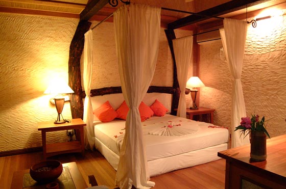 Island Lodge (план номера) — расположен в саду, выходит на лагуну, включает спальню с гостиной зоной, гардеробную, открытую обеденную зону, ванную комнату, внутренний дворик с тропическим душем.