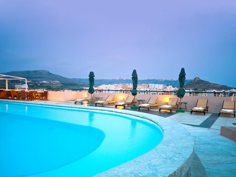 Отель расположен в бухте Марсальфорн (Гозо) недалеко от известного песчаного пляжа Ramla Bay и одной из главных достопримечательностей острова - Пещеры нимфы Калипсо.