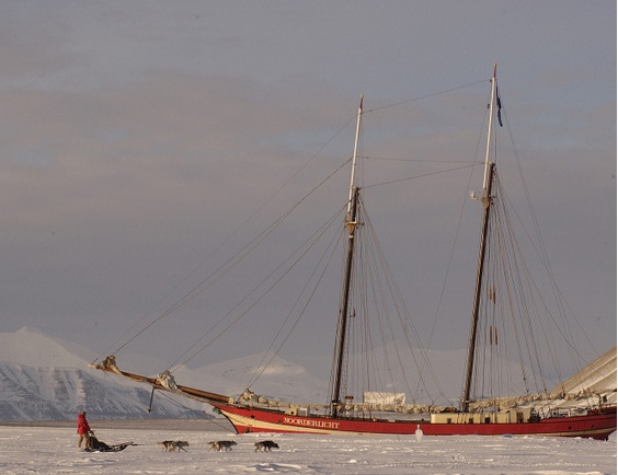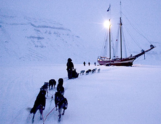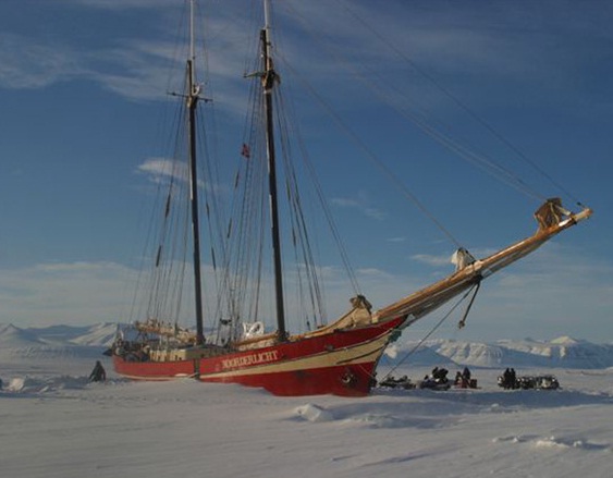 Отель- корабль расположен на Шпицбергене, во льду.