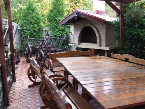 • терраса с мебелью в деревенском стиле;