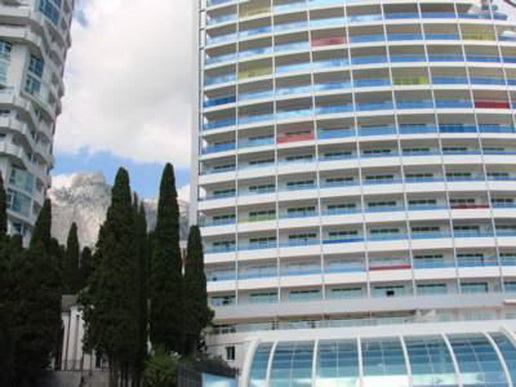 - 2-местные 3-комнатные апартаменты 4 (площадь 200 кв.м, 3 спальни, гостиная, система центрального кондиционирования, мини-бар, телефон, выход в интернет (Wi-Fi), халаты, тапочки, кухня, обставленная всей необходимой техникой (холодильник, электрочайник, встроенная плита), 3 санузла с душевыми кабинами, биде, умывальник, туалет, фен, набор косметической продукции, возможна установка 6 доп. мест, балконы с видом на море и горы, корпус «Башня»),