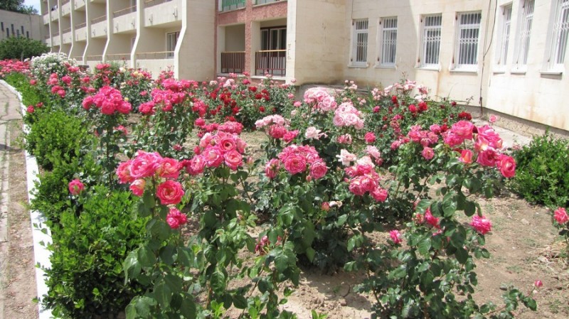 У пансионата небольшая огороженная озелененная территория.