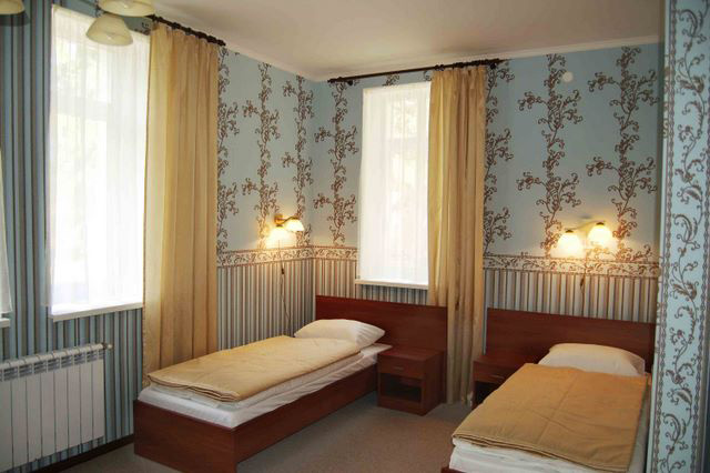 - 2-местные стандартные номера (2-спальная/две 1,5-спальные кровати, телевизор, холодильник, кресло-кровать, душевая кабина, туалет, фен),