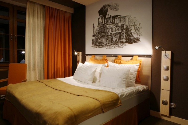 - 2-местные стандартные номера (2-спальная кровать, мини-бар, телефон, телевизор с кабельным телевидением, DVD, CD-плеер, электронный замок, Wi-Fi, мебель изготовлена по спецзаказу, ковровое покрытие, вид из окон на парк и центр города, душевая кабина, туалет, часть номеров с балконом),