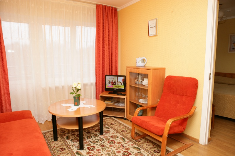 - 2-местные 2-комнатные люксы (2-спальная кровать, диван, телевизор, холодильник, электрочайник, душевая кабина, туалет, в части номеров - балкон).