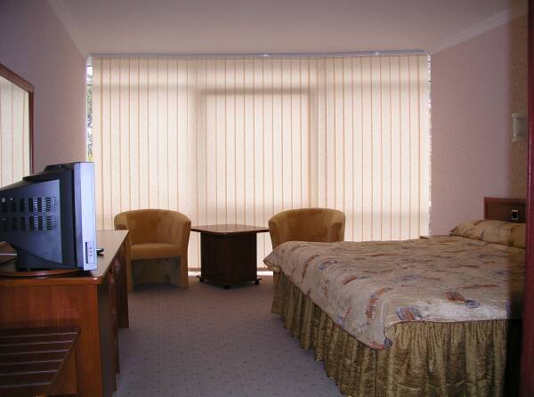 2-местные 2-комнатные люксы повышенной комфортности (большая площадь номера, 2-спальная кровать, шкаф-купе, телевизор со спутниковым телевидением, мини-бар, сейф, телефон, фен, круглая ванна, туалет, 2 балкона (один - с видом на море)).