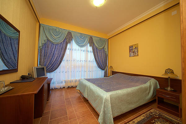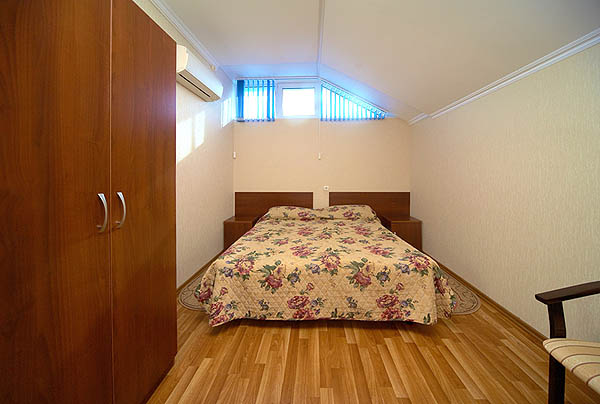 2-местные номера без удобств (7-й «мансардный» этаж, кровати, телевизор, кондиционер, мини-бар, на полу кафельная плитка; на этаже - по два душа, умывальника и туалета на 5 номеров),
