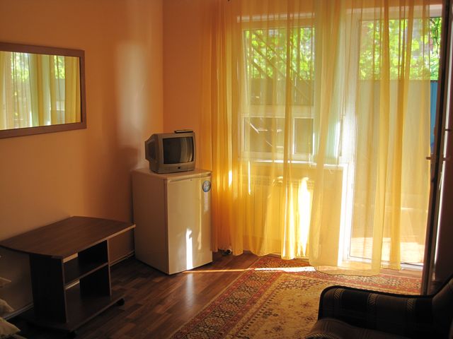 песчано-галечный, оборудован лежаками и навесами, в 100 метрах от корпуса. Платные услуги – гидроциклы, катер, прокат лодок и аквалангов, «банан».