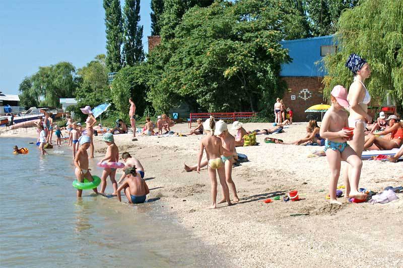 Собственный песчано-мелкоракушечный благоустроенный пляж протяженностью 150 м на заливе и 150 м на лимане в 20 м от корпусов.