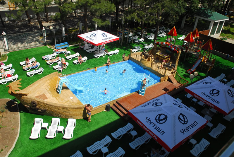 лечебно-оздоровительный центр, крытый бассейн с морской водой (6х12м.), 2 открытых бассейна(с пресной водой) :взрослый с каскадом и детский,вокруг бассейна лежаки, сеть баров и ресторанов, сауна, тренажёрный зал, спортивные площадки, теннисный корт, интернет кафе, экскурсионное бюро.